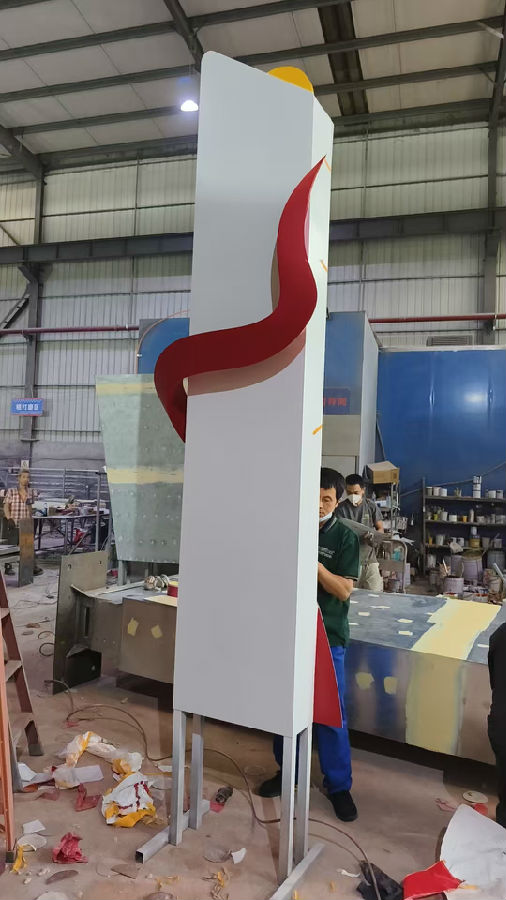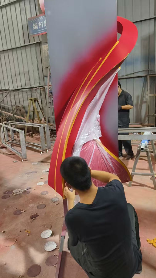 金属飘带装饰的立牌制作中